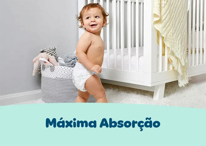 Camada ultra absorvente: Absorve rapidamente a umidade mantendo sequinha a pele do bebê .