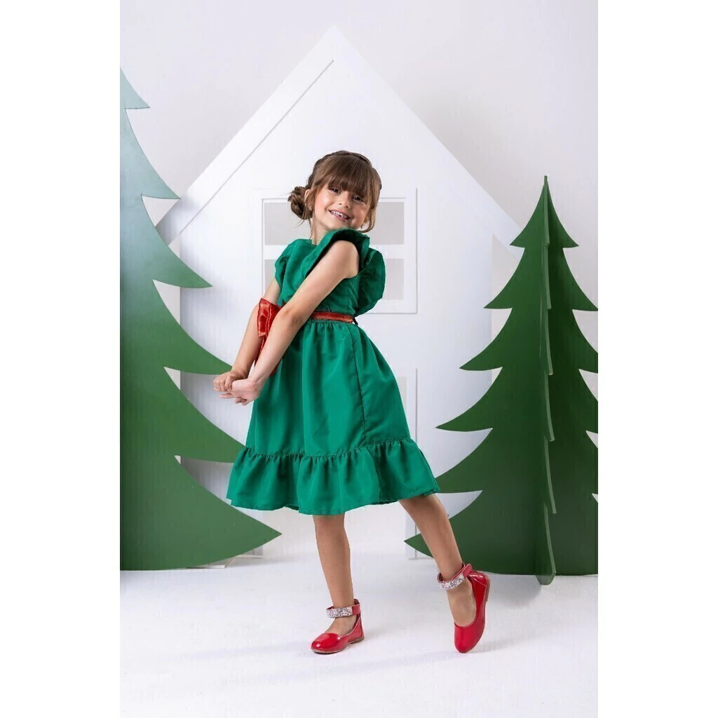 Confeccionado em tecido misto possui forro em poliéster e algodão para não incomodar a criança e proporcionando um caimento incrível e sofisticado, possui gola redonda, comprimento médio, mangas curtas, possui elástico nas costas para melhor ajuste, acabamento com lindo laço na parte posterior do vestido completa o look dos sonhos!