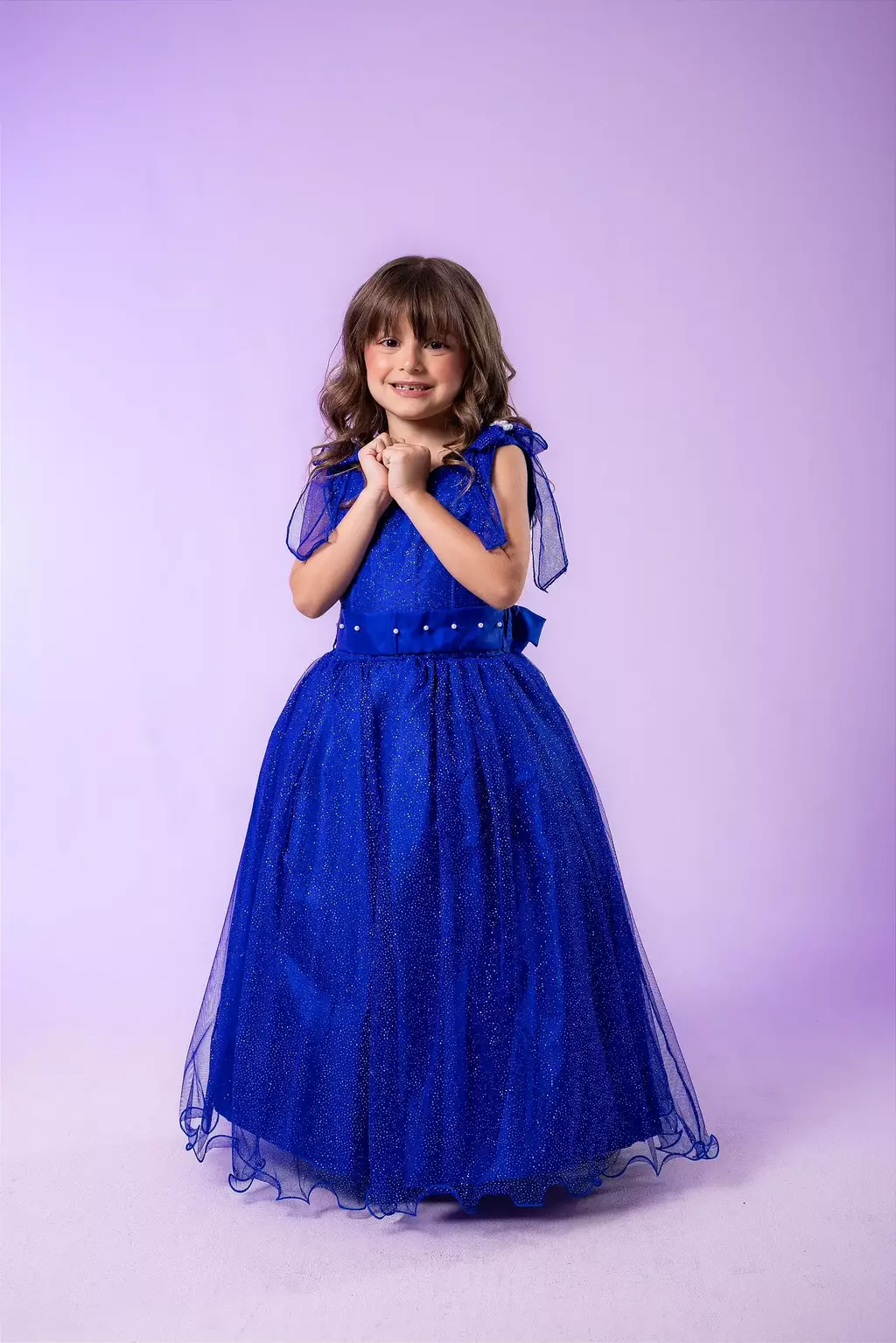 Confeccionado em tecido misto possui forro em poliéster e algodão para não incomodar a criança e proporcionando um caimento incrível e sofisticado, possui gola redonda,renda de flores e apliques de strass no peito, comprimento médio, mangas curtas, possui elástico nas costas para melhor ajuste, acabamento com lindo laço na parte posterior do vestido completa o look dos sonhos!